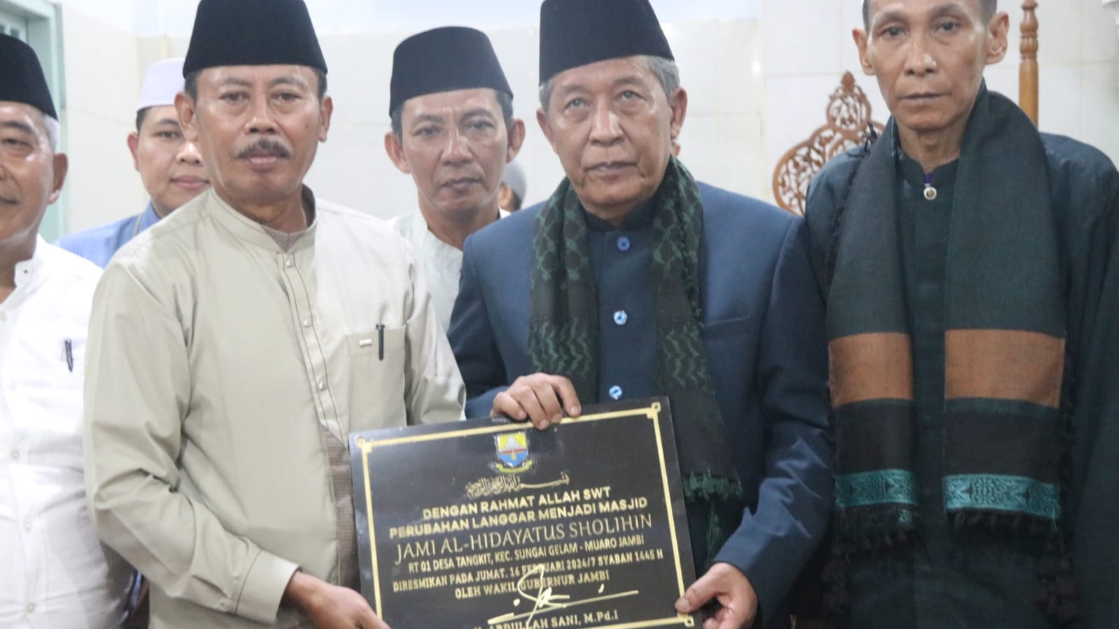Muarojambi – Wakil Gubernur Jambi Abdullah Sani meresmikan status perubahan langgar menjadi Masjid Jami’ Al Hidayatussholihin Kebun Kolim Desa Tangkit Kecamatan Sungai Gelam Kabupaten Muarojambi.