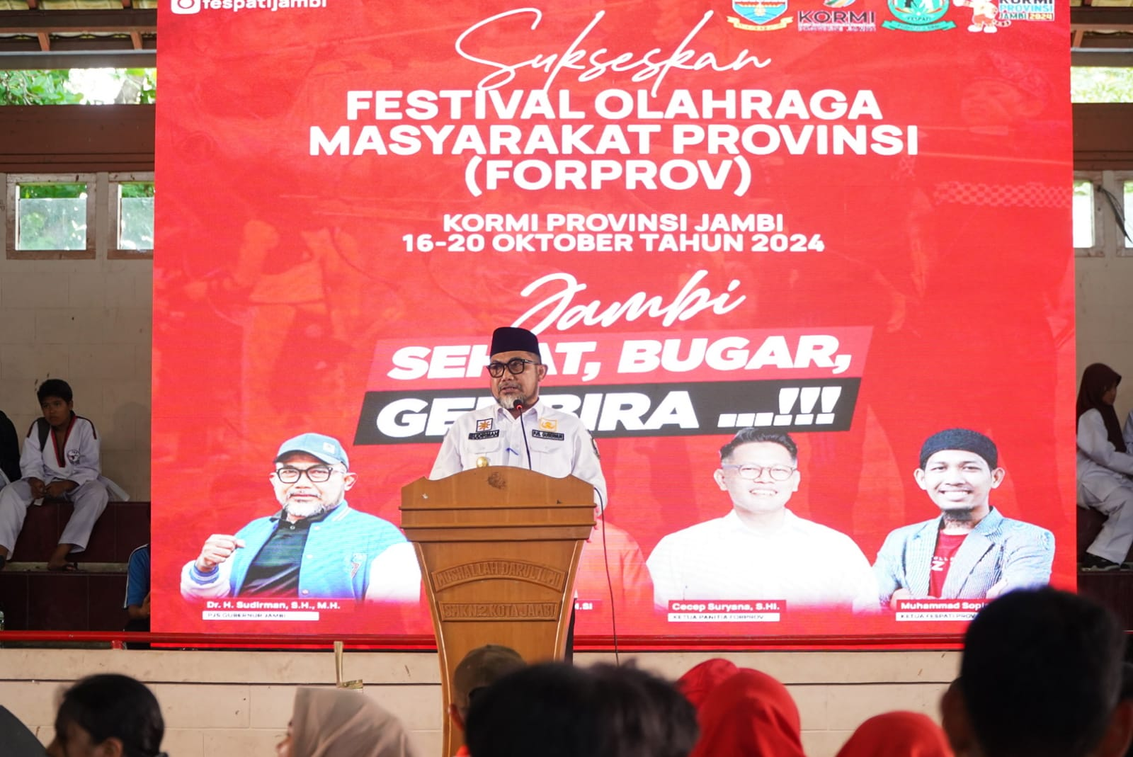 Dalam kata sambutannya, Pjs. Gubernur Sudirman mengatakan Pemerintah Provinsi Jambi memberikan apresiasi atas terselenggaranya acara ini, yang merupakan inisiatif KORMI Provinsi Jambi dalam mendukung Program Prioritas Nasional untuk memasyarakatkan olahraga.