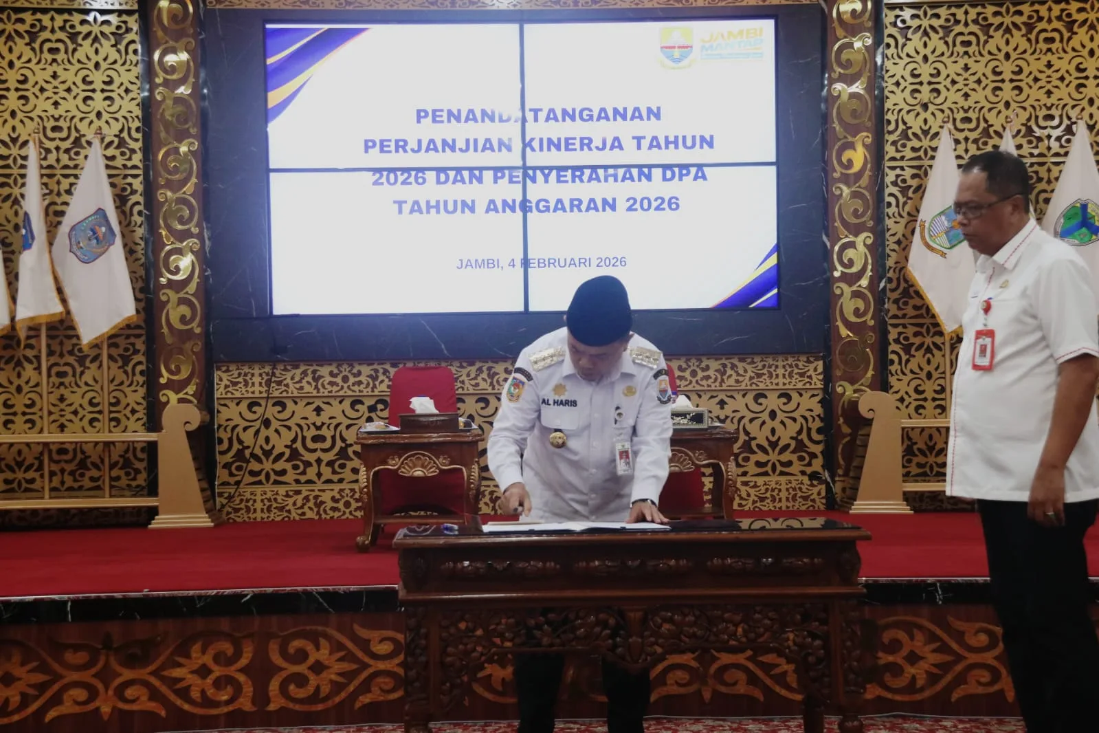 Penegasan tersebut disampaikan saat Penandatanganan Perjanjian Kinerja Tahun 2026 yang dirangkaikan dengan Penyerahan Dokumen Pelaksanaan Anggaran (DPA) Tahun Anggaran 2026  yang bertempat di Ruang Pola Kantor Gubernur Jambi pada Senin, 4 Februari 2026.