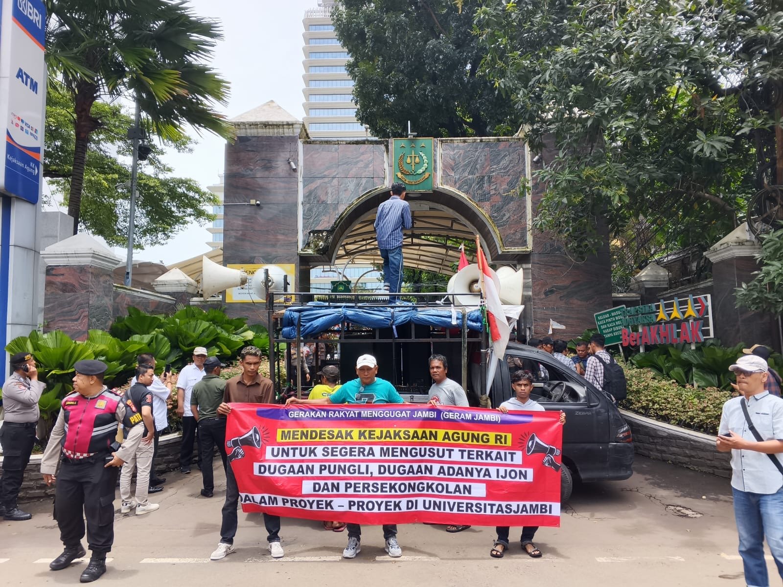 ‎Atas berbagai temuan praktik kotor dalam pelaksanaan proyek-proyek di Universitas Jambi, massa Geram mendesak Kejagung RI untuk sesegera mungkin memanggil dan memeriksa PPK beserta tim teknis terkait pengadaan di Universitas Jambi.