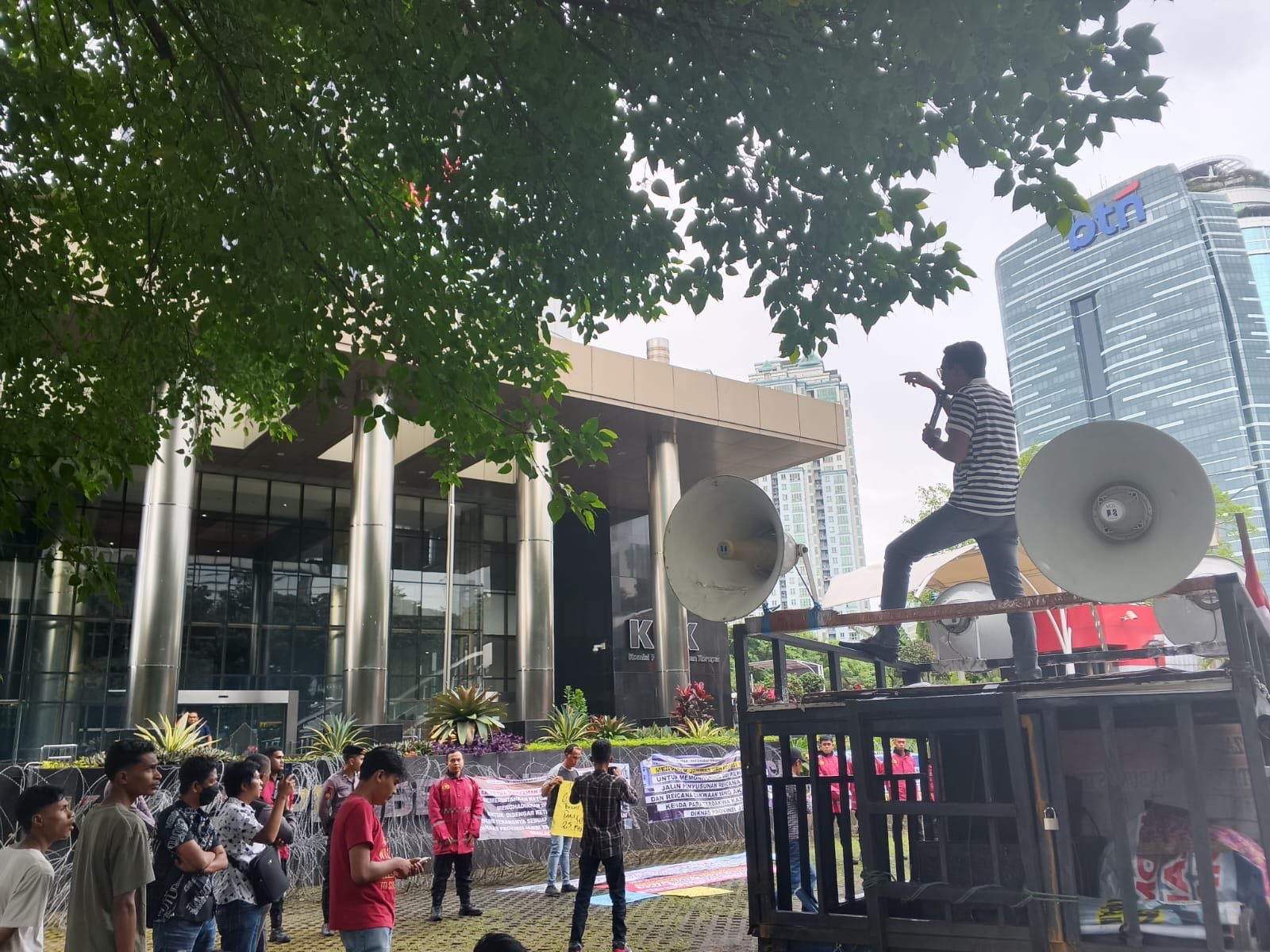 Koordinator lapangan aksi, Rukman, dalam orasinya turut mendesak KPK memanggil sejumlah pihak yang dianggap terkait dalam proses penetapan dan pembayaran bonus direksi Bank Jambi tahun 2024.