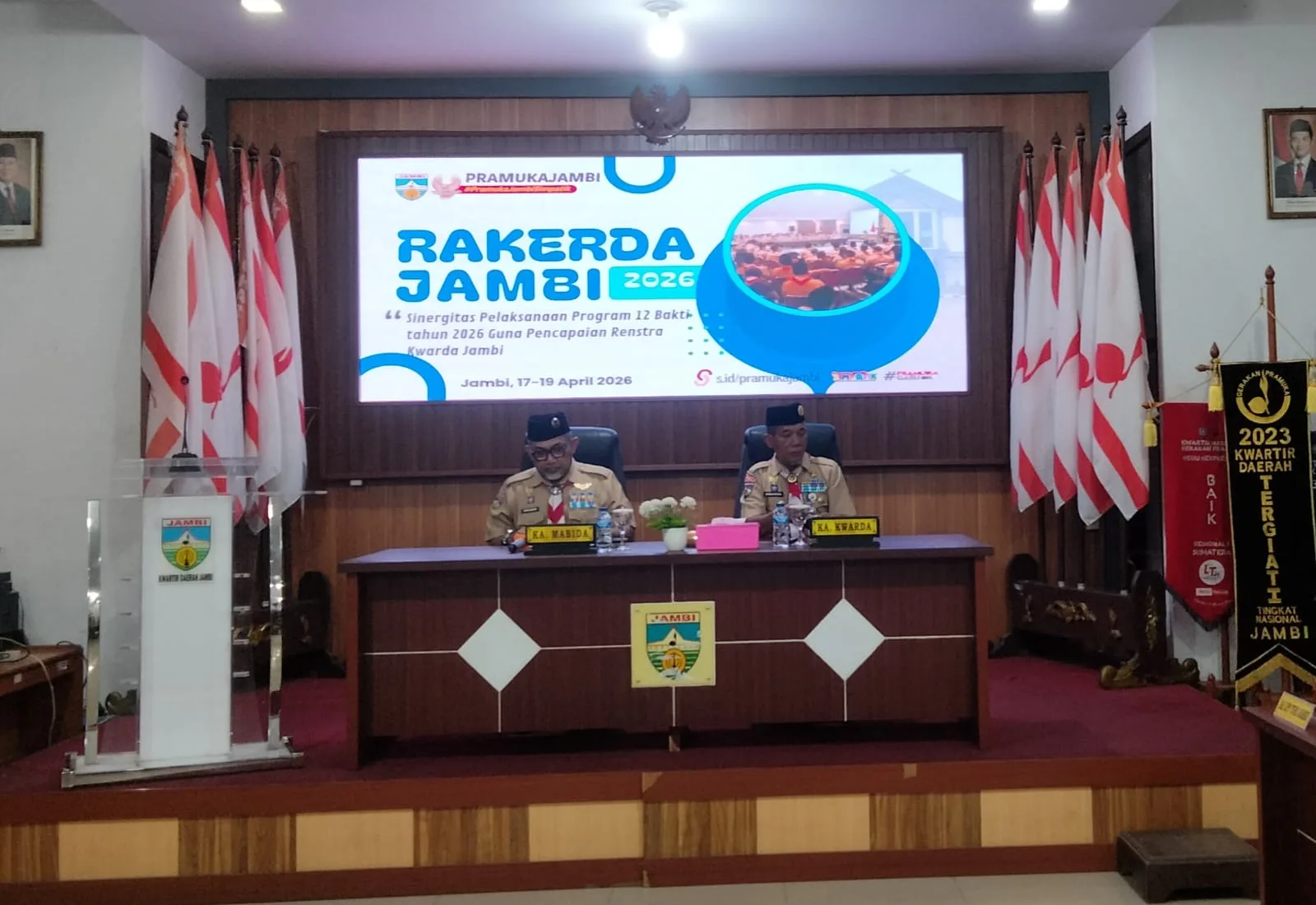 Jambi – Sekretaris Daerah (Sekda) Provinsi Jambi, Sudirman, resmi membuka Rapat Kerja Daerah (Rakerda) Gerakan Pramuka Jambi Tahun 2026. Kegiatan ini digelar di Aula Maschun Sofwan Kwarda Jambi, pada Jumat, 17 April 2026 malam.